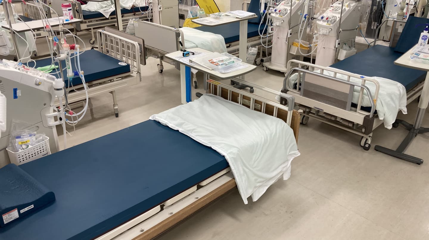 「日高リハビリテーション病院」様では、“透析室”の全床と“外来”の2床の合計53床で、「スーパーフレックスAXシリーズ」と「フレックスクッション ピロータイプ」を採用いただいております。「日高リハビリテーション病院」様では、リネンの削減とスタッフの方の手間の削減のため、シーツと枕カバーを使わない“リネンレス”の環境でご使用して頂いております。
