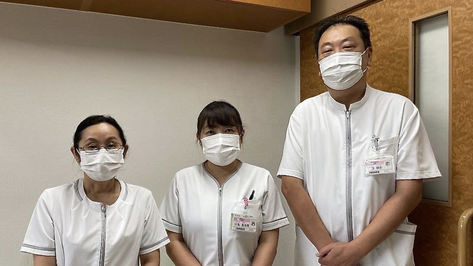 お話を聞かせていただいた看護部 統括師長 M様(右)、病棟看護師長 T様(左)、透析室 看護師主任 K様
