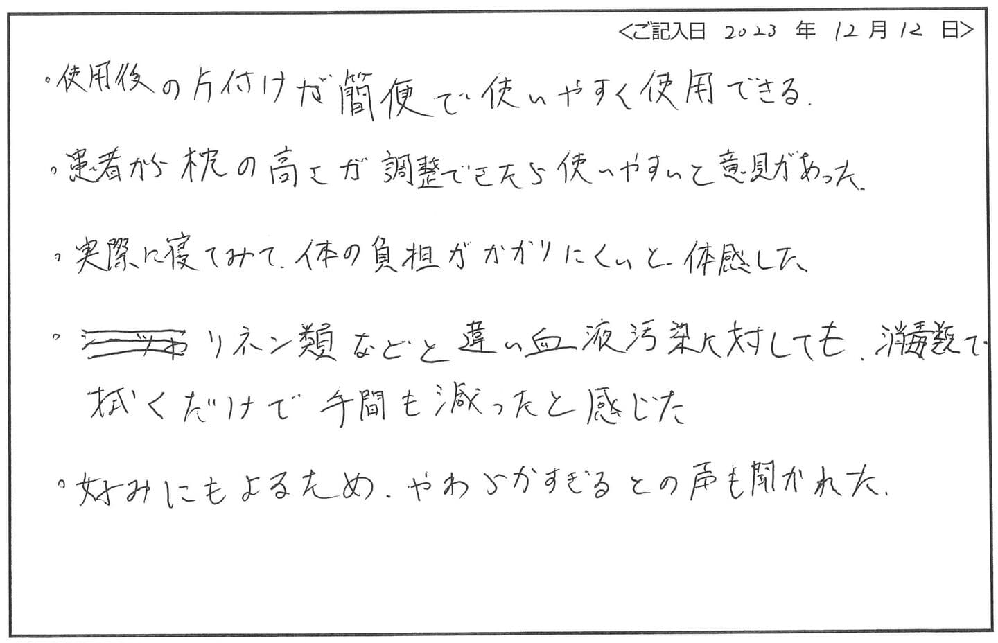 - 患者様からは、“柔らかくなって良かった” “寝心地は良い” という声が聞かれます。