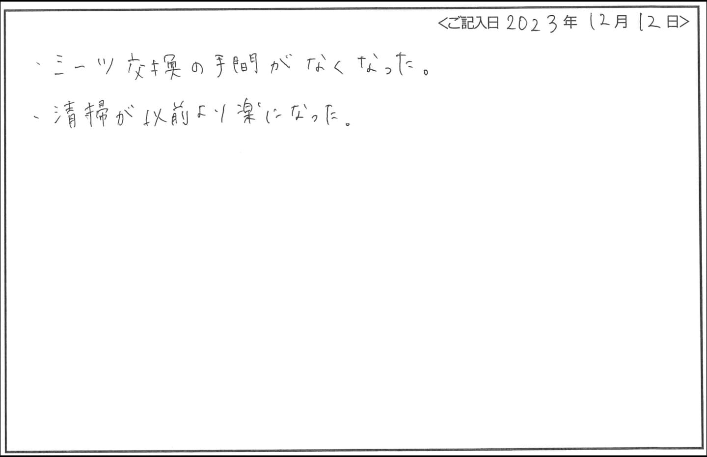 - シーツ交換の手間がないので、他のことに時間を使えるようになりました。