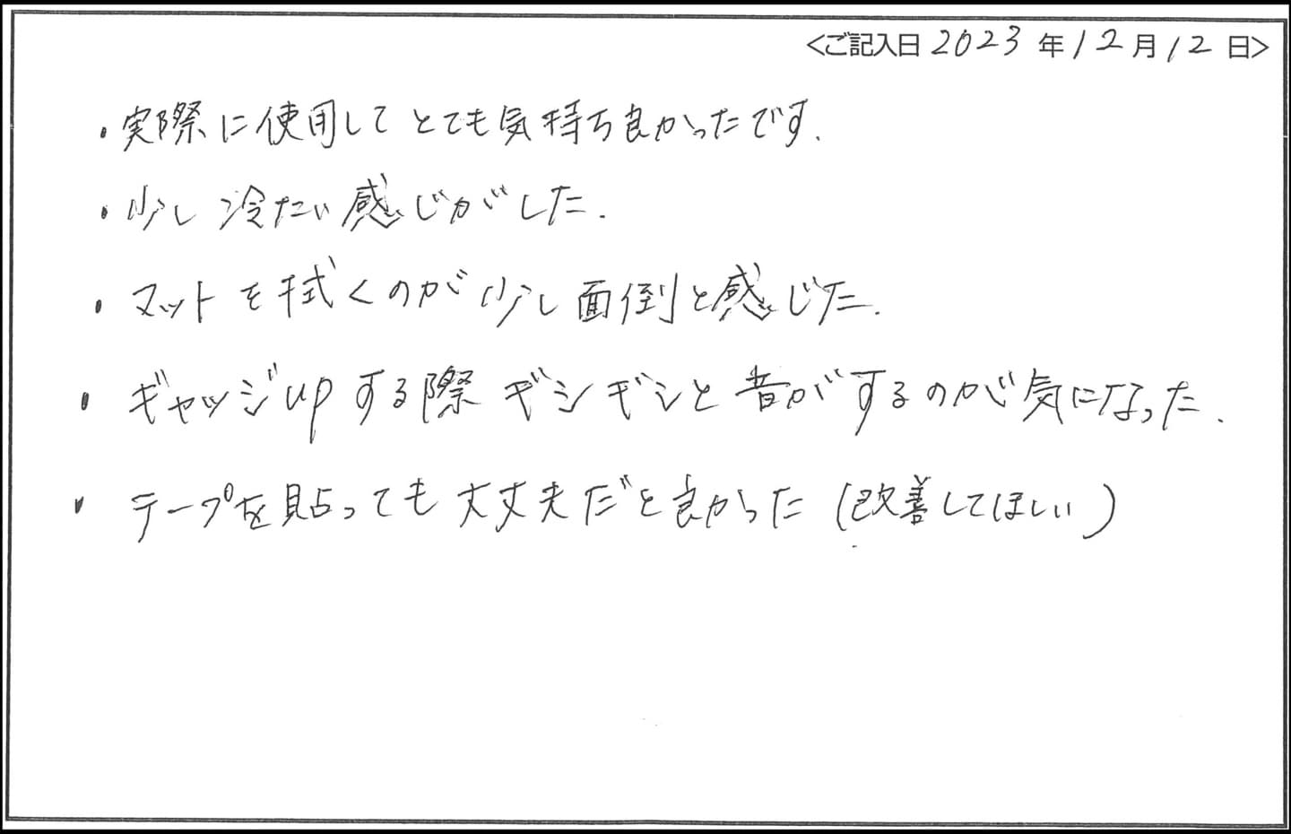 - テープを貼っても大丈夫だと良かった(改善して欲しい)