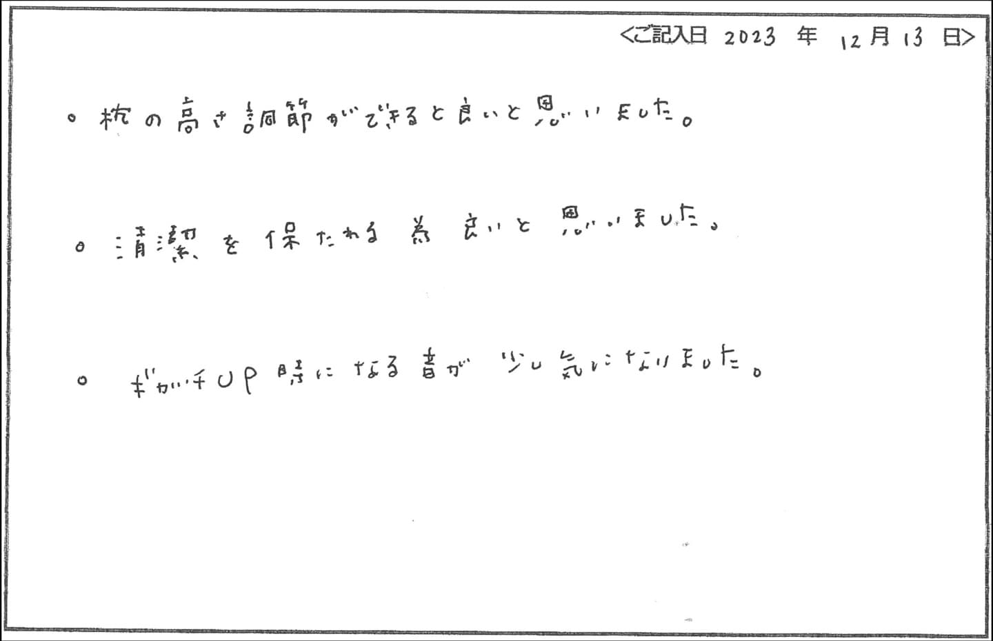 - 枕の高さ調節ができると良いと思いました