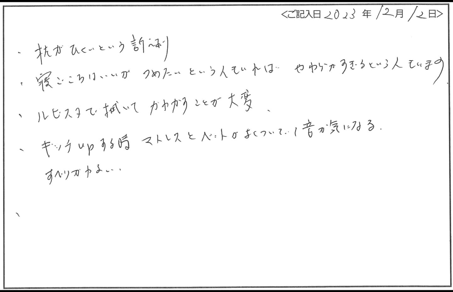- マクラは “低すぎる” 等、不満の声があります。